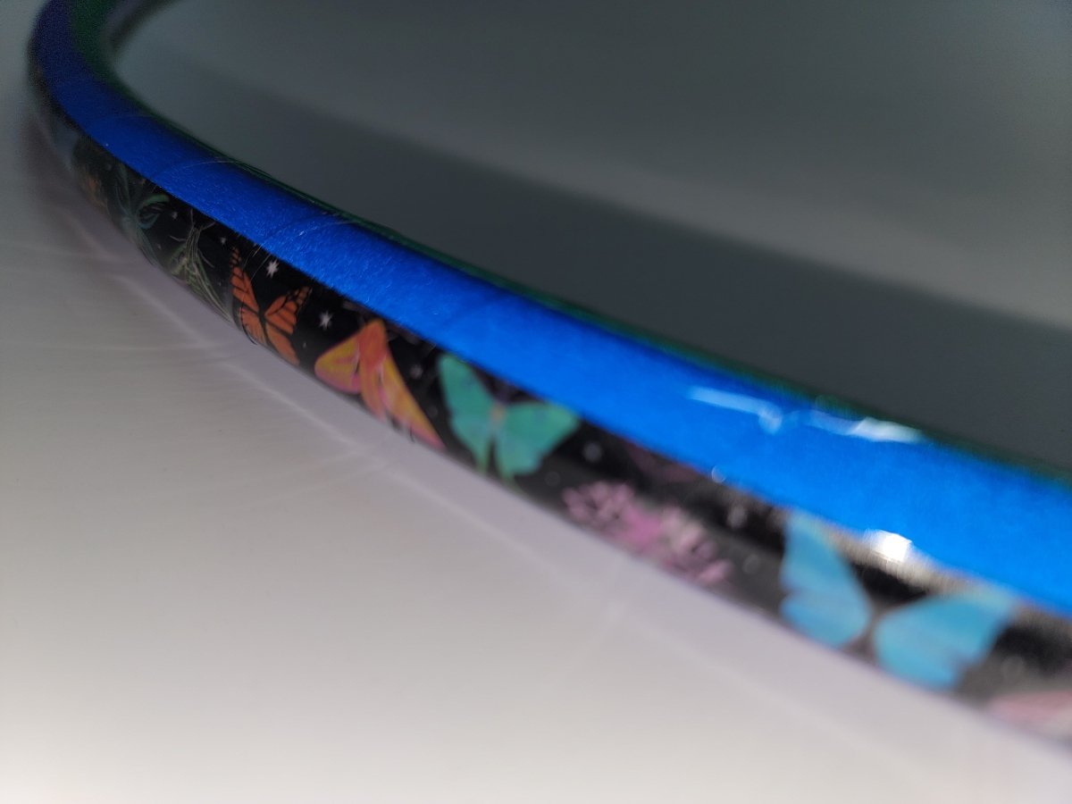 Please be aware that decorative tape can easily scuff and scrape, especially on hard surfaces. Adding clear protection tape is highly recommended to help extend the lifespan of your beautifully taped hoop!